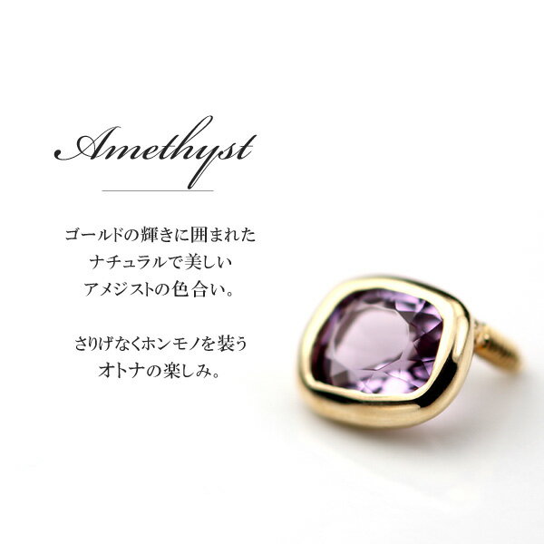 アメジストは、 あえてアシンメトリーにカットすることで ナチュラルな質感に... ゴールドの滑らかな輝きに囲まれた 温かみのある仕上がり。